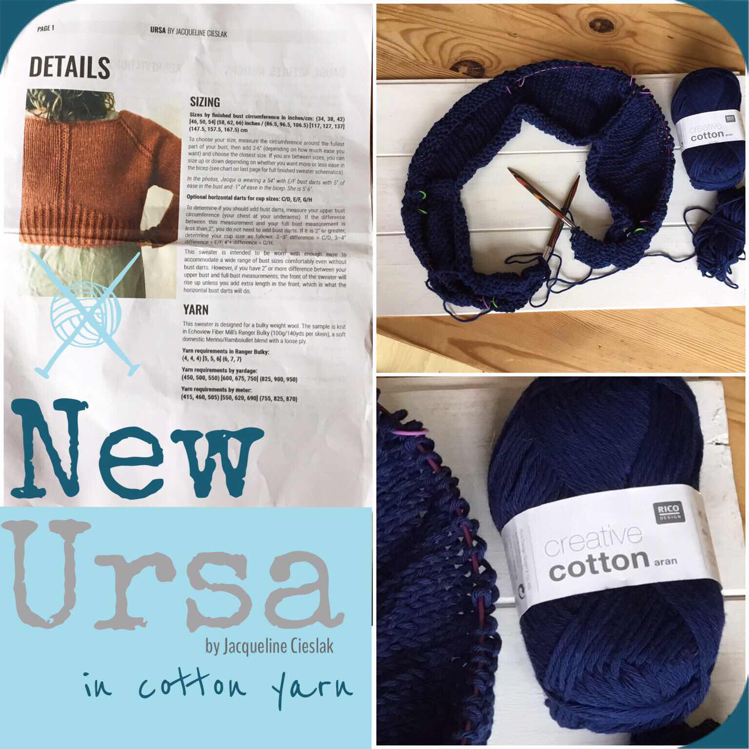 I’ve started a new sweater knit - it’s another Ursa by Jacqueline Cieslak. This time, I’m using cotton yarn - creative cotton, Aran in a lovely French Navy colour by Rico Design. I’m using the same needles (6.5mm) as my previous Ursa. You can check out my first Ursa here. I’ve chosen to start this