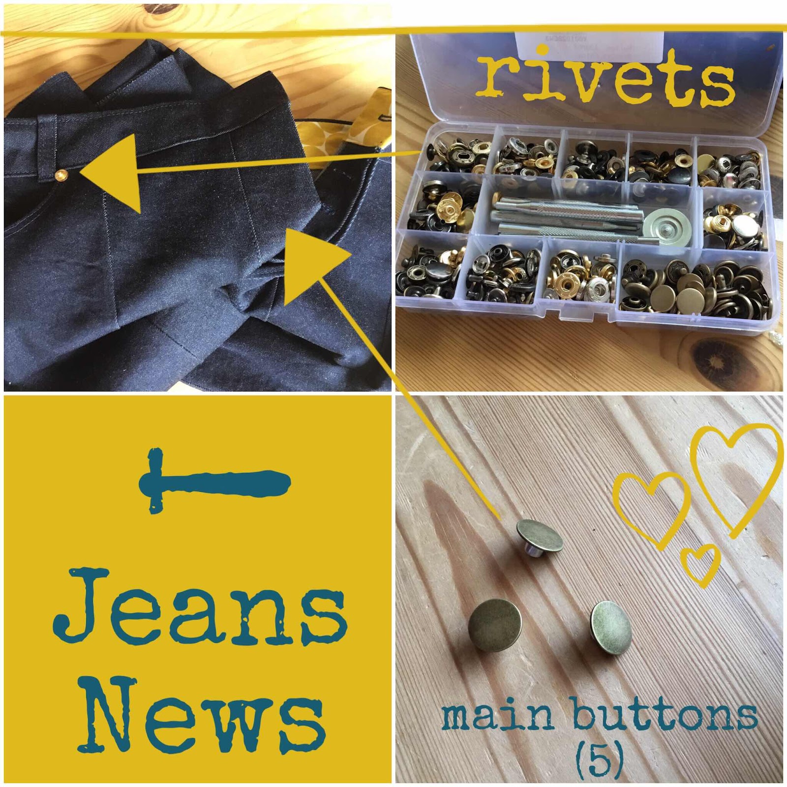 I think, most of the rivets in my box will work OK, although I have a particular liking for the nipple rivet highlighted in my little photo story above. Having done a little research, this type of rivet is the most difficult to set without a machine ! I need to do a bit more practicing before I commit. I intend to set 10 rivets, either side of each pocket and on the top of each side seam. So, I need to have the technique ‘nailed’.