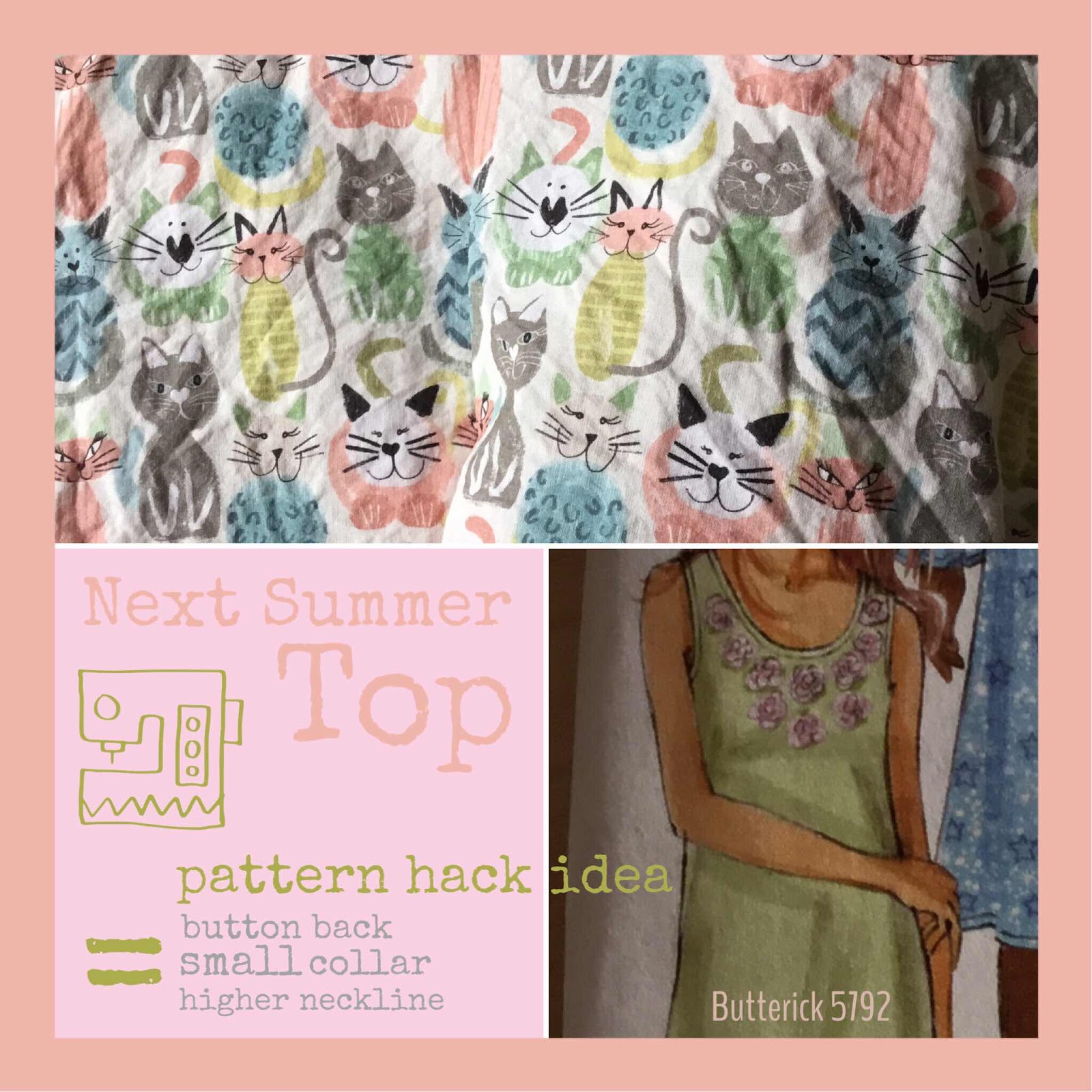 I have another idea for a new Summer Top. I’m using the same Butterick 5792 pattern, as used for my previous Summer Tops. You can see the previous versions here and here. This time, Im going to add a button back, a small collar and a higher neckline. This is quite a big hack of the pattern Butterick 5792 but I love the fit of this top and I’m very keen to exploit all my ideas.