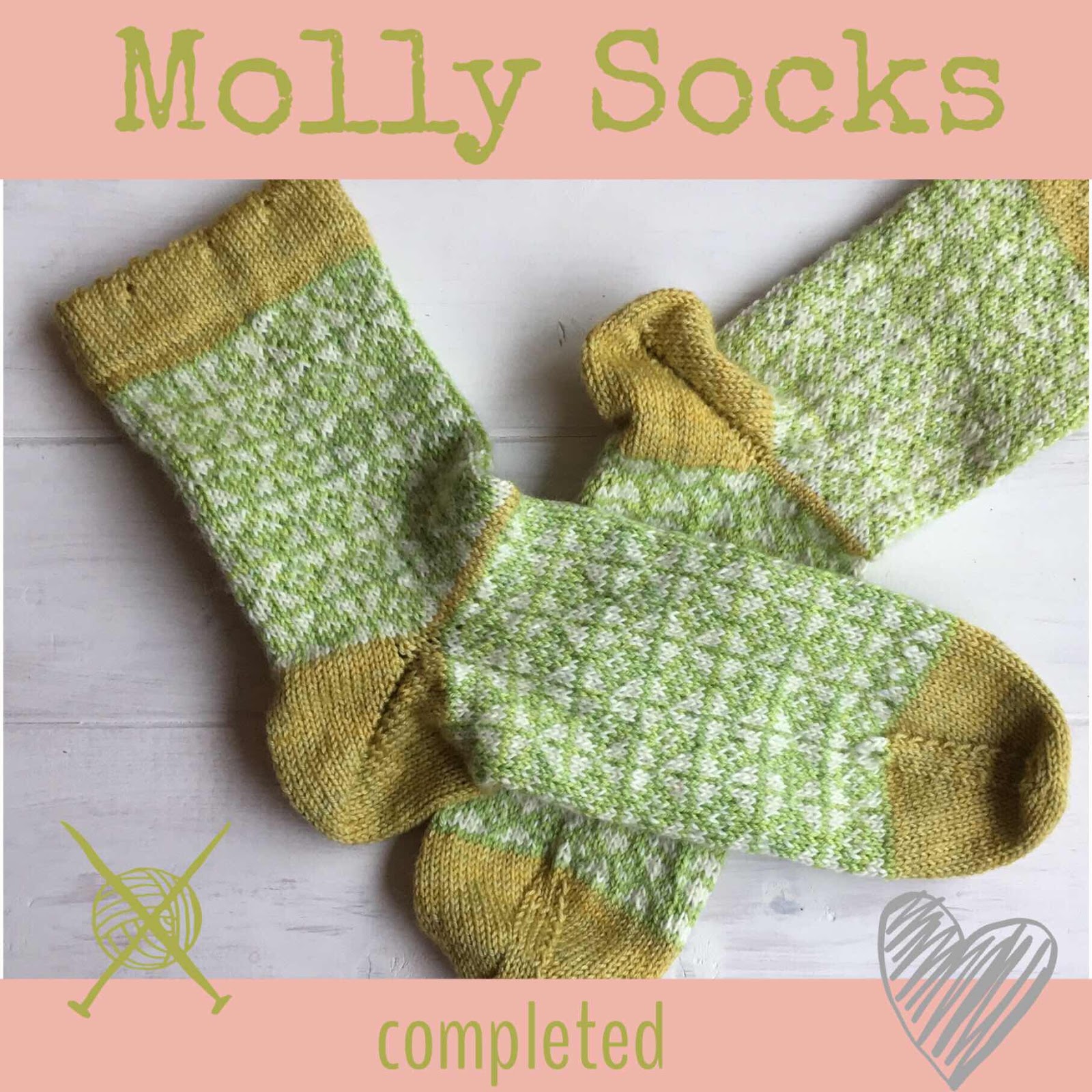 I’ve finally finished the lovely Molly Socks by Anna Bergman. These socks seem to have taken forever ! However, they are very pretty and fit well - any problems I’ve had have been, immediately forgotten ! The colours work beautifully together and I especially like, the sewn down picot cuff.