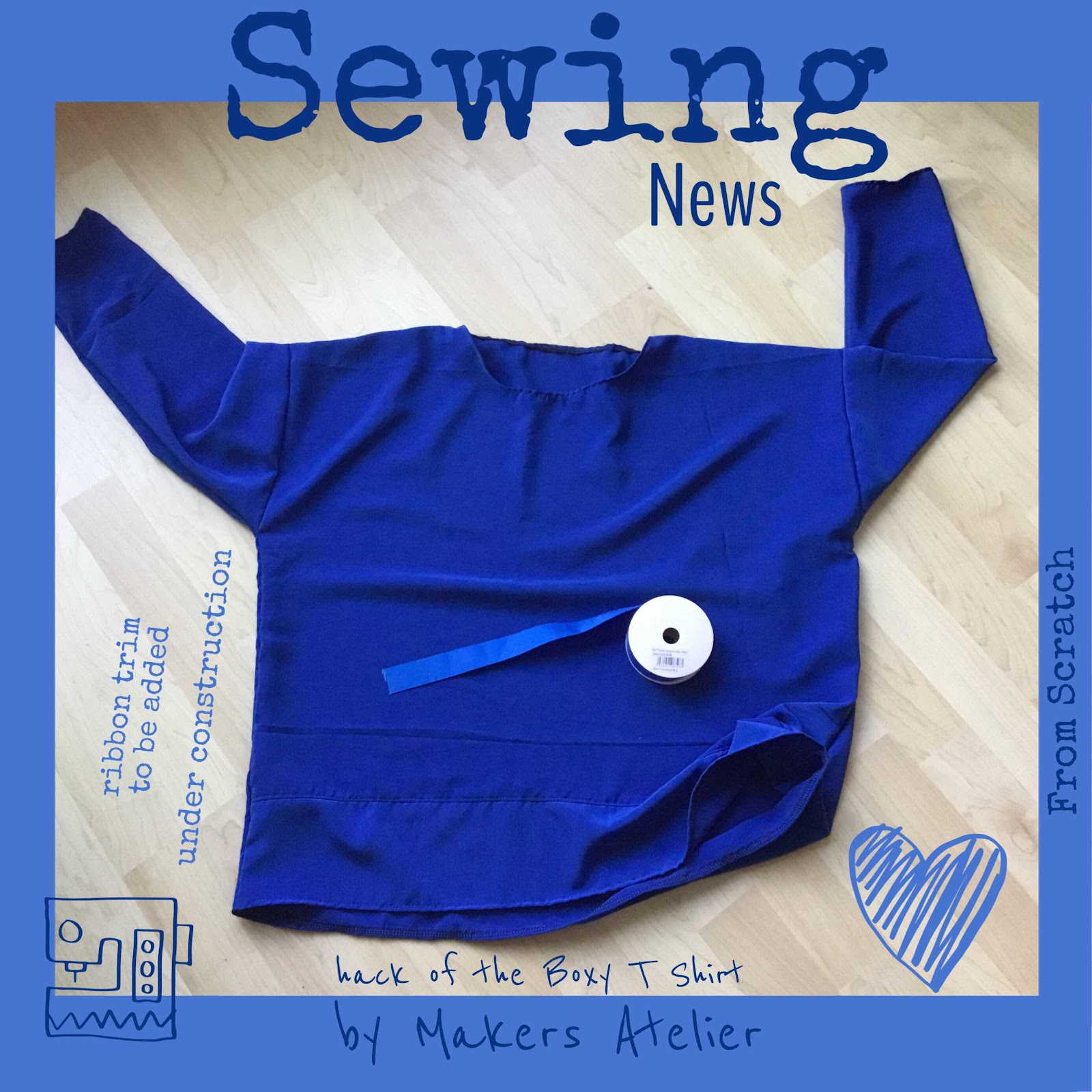 I introduced the idea of making something from a lovely blue silky fabric last week, check out the plan here. I had a couple of options which you can see in my plan. In the end, I opted for the Boxy T shirt by Makers Atelier. However, all was not straightforward. Although the Boxy T Shirt is designed for both stretch and woven fabric, I didn’t look at the finished garment measurements close enough. As a result, the first T shirt didn’t fit. I had ignored the advice about measuring my biceps. The arms were very tight and no good at all. The neck opening was also much too small, I have a very small head and the T shirt would not go over my head. Not sure how that happened ? The length was also a bit on the short side (if finished in the way the pattern suggests). Generally, a disaster ! So, Plan B was required. I knew, I could resurrect the project.