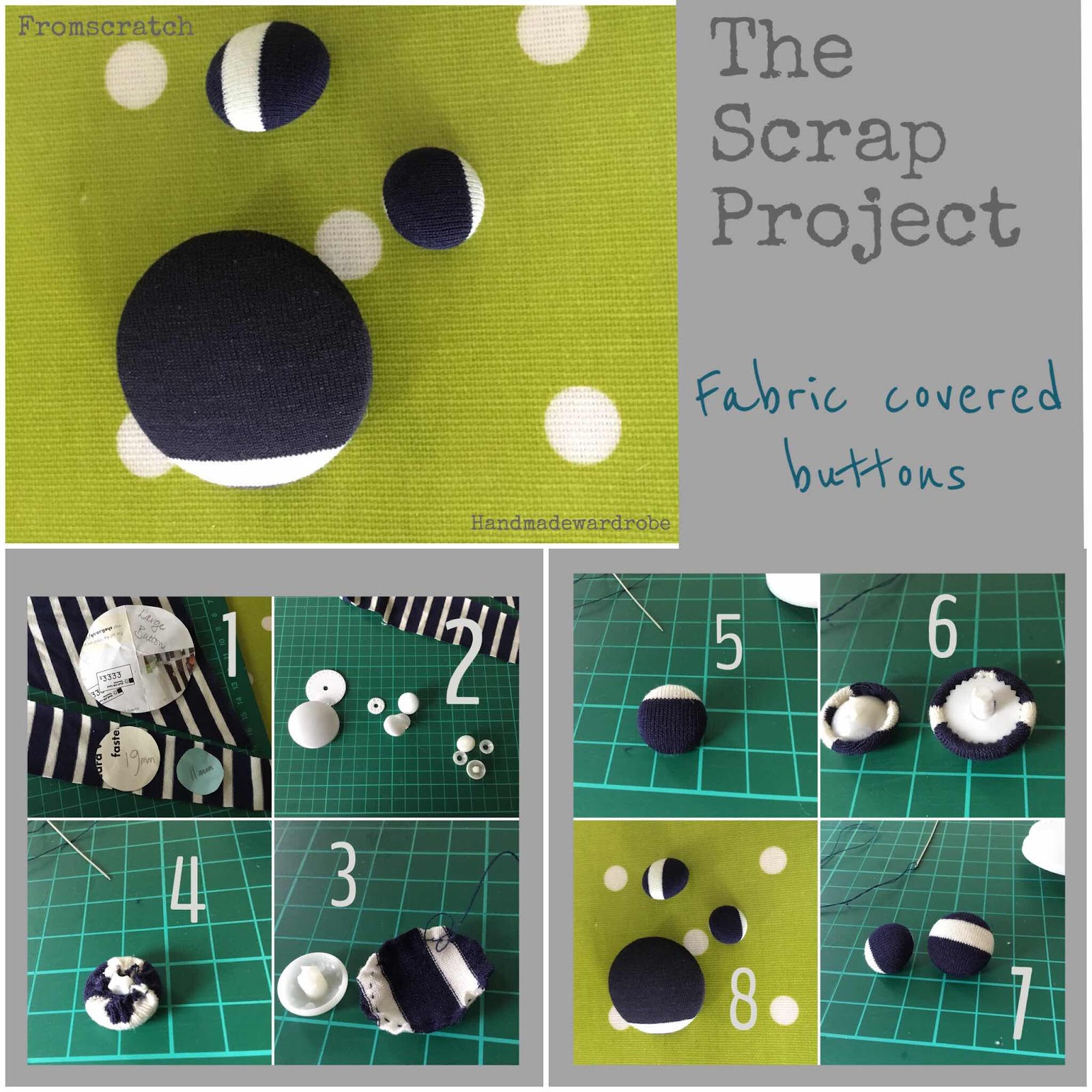 I’m sharing the second Scrap Project sample today. If you look back to the Friday blog post you can read the story behind this project. The second sample is a range of fabric covered buttons.